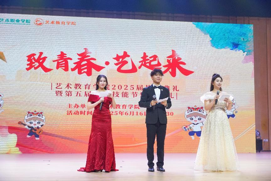 文艺汇演环节精彩纷呈。基础教育学院、演艺学院将《第一天》《一路生花》《我们的明天》等曲目串联成时光长廊,在和声共鸣中传递外艺学子的青春梦想。民政服务与管理学院带来的表演《像你这样的朋友》为即将毕业的学长学姐们送上最美好的祝福。财会金融学院《这世界那么多人》的歌声与《Planet Swan》的现代舞展现出财经学子的人文情怀。艺术教育学院优秀毕业生合唱的《凤凰花开的路口》,为毕业篇章写下动人终曲。