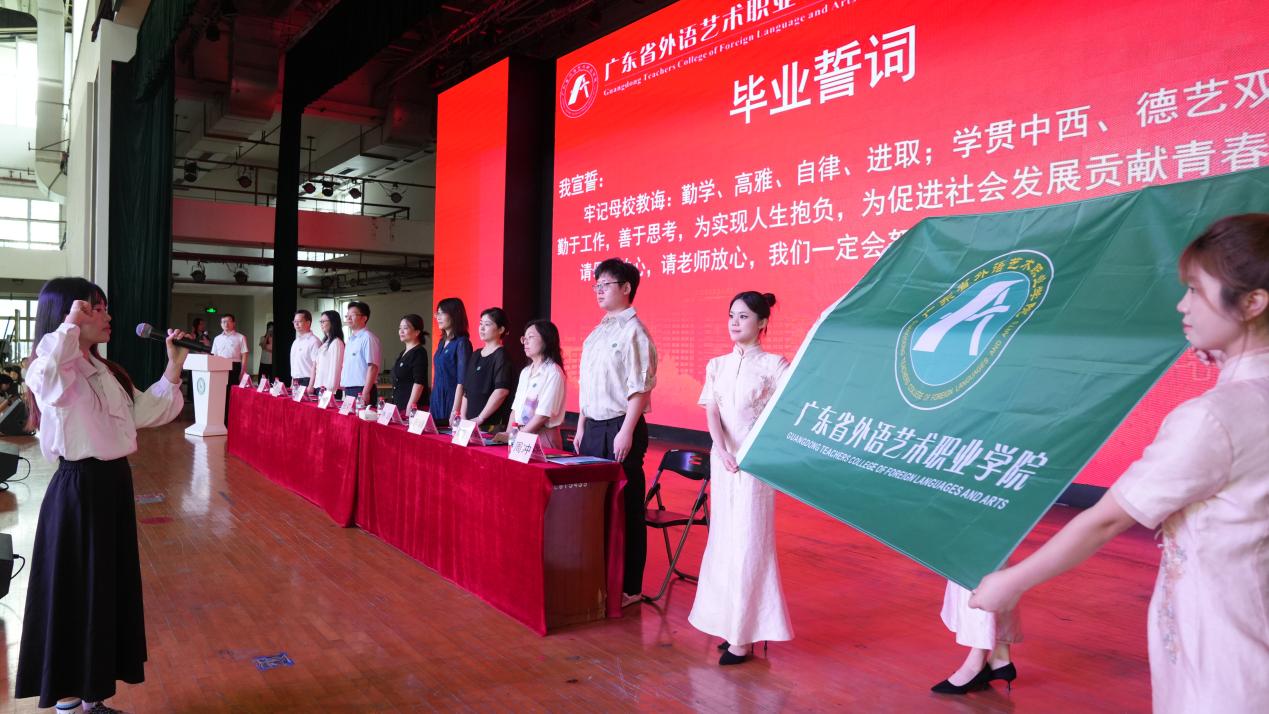 典礼上,各学院设置了极具特色的环节。数字创意学院、学前教育学院、民政服务与管理学院、食品工程学院将专业特色与毕业纪念礼深度融合,传递以文化人、以美育人的温暖情怀。演艺学院、数字创意学院、财会金融学院将快闪秀、醒狮表演、青春纪念视频作为典礼预热环节,用动感的舞姿音乐点燃毕业季的热烈氛围。基础教育学院、外语外贸学院、人工智能学院、艺术教育学院等邀请优秀学生代表分享成长路径,以朋辈榜样力量树立“广外艺标杆”。