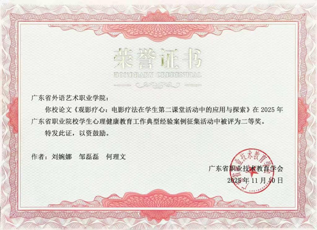 我校积极参加职业院校的心理工作交流,在案例撰写中凝练属于广外艺的心理健康教育工作模式。通过不断汇聚智慧、总结经验,我们定能夯实心育根基,护航学生健康成长,将学校的心理健康教育水平提升到更高水平。